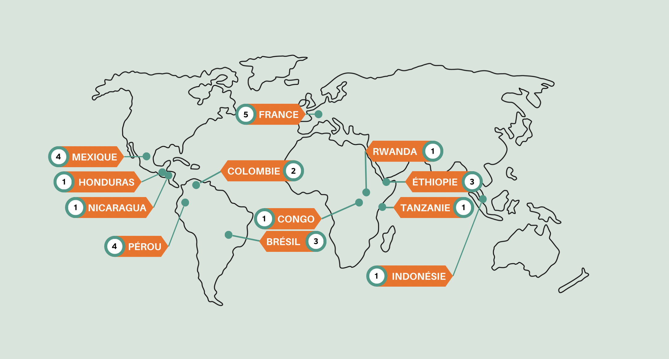 Nous cherchons constamment de nouveaux producteurs (création de filière) dans plusieurs pays afin de faire découvrir aux consommateurs des cafés et des cultures différents.